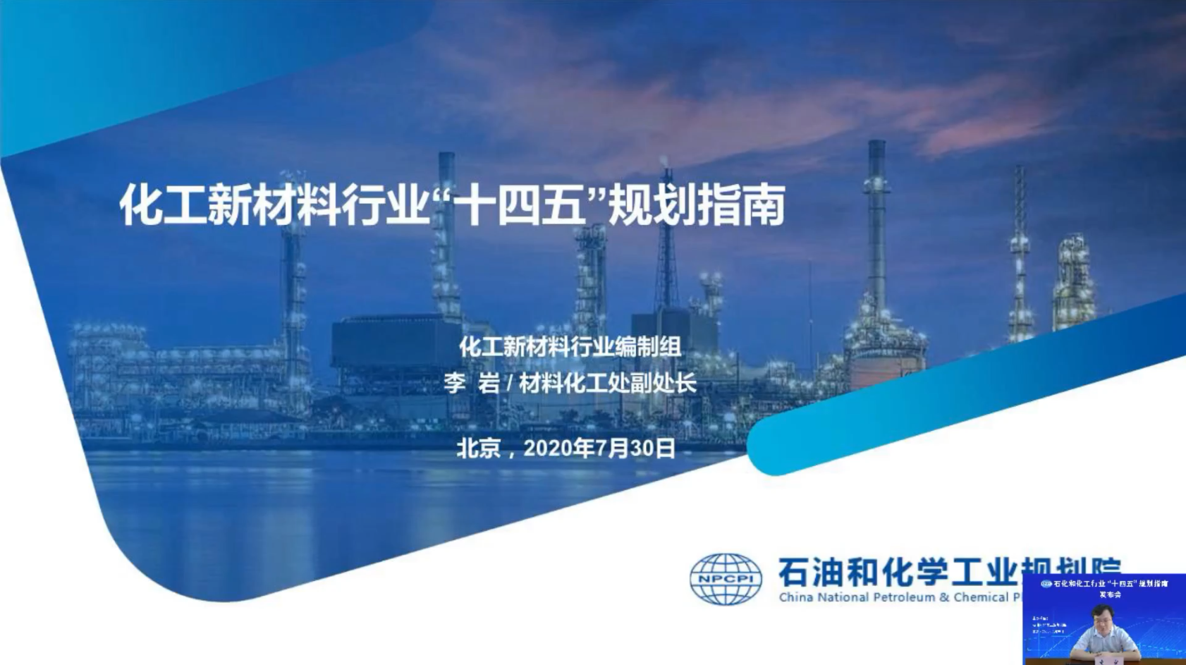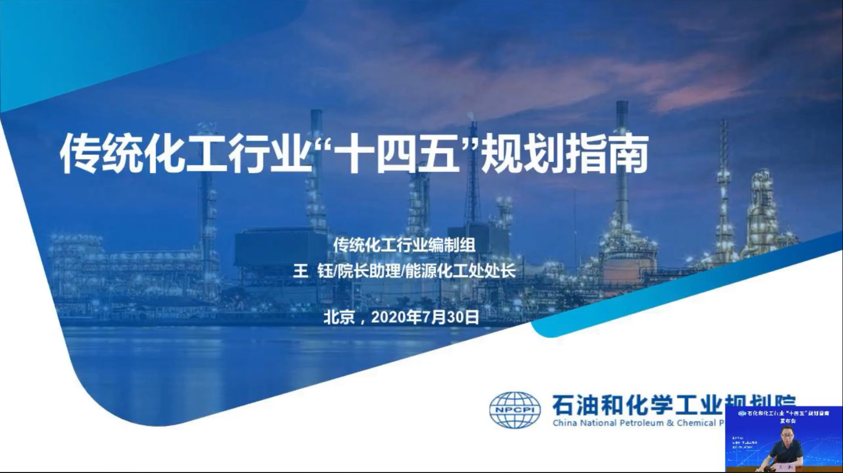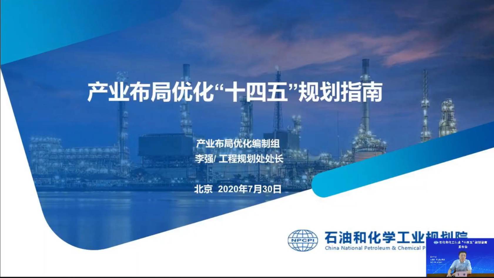 為解決石化化工行業當前存在的問題和應對國內外新形勢,指導行業“十四五”高質量健康發展,特別是指導企業做好“十四五”規劃編制工作,石油和化學工業規劃院編制了《石化和化工行業“十四五”規劃指南》(以下簡稱“規劃指南”)。2020年7月30日上午,石油和化學工業規劃院通過在線直播的形式,對《石化和化工行業“十四五”規劃指南》進行了發布,會議取得了圓滿成功,同時在線收看人數超5萬人。發布會分一個主旨報告和五個專題報告對《規劃指南》進行了詳細介紹,會議由李志堅副院長和鄭寶山副院長主持。
