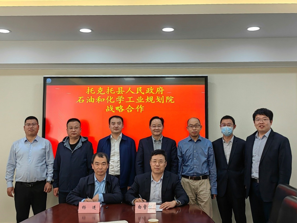 2023年3月15日,石油和化學工業規劃院與托克托縣人民政府戰略合作簽約儀式在北京市舉行。規劃院黨委書記、院長李君發,院黨委委員、石油化工處處長白雪松,托克托縣委副書記、縣長高正,縣人民政府黨組成員、副縣長楊進出席簽約儀式。