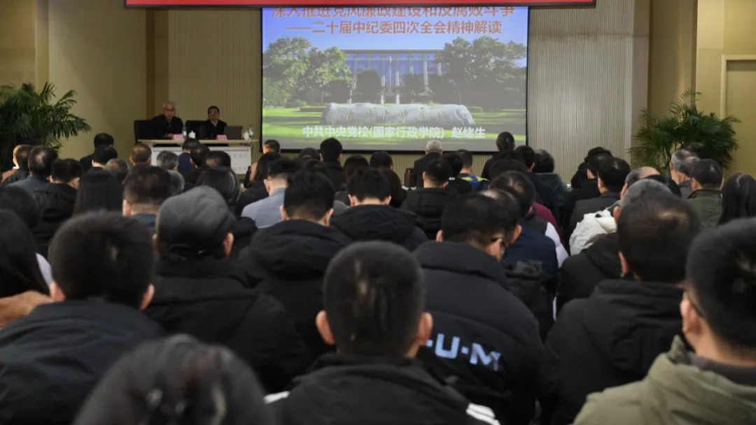 會上,中共中央黨校(國家行政學院)教授趙緒生作《深入推進黨風廉政建設和反腐敗斗爭——二十屆中央紀委四次全會解讀》輔導報告,介紹了二十屆中央紀委四次全會總體概況,宣貫了習近平總書記關于黨的自我革命的重要思想、改革精神和嚴的標準正風肅紀反腐等內容。